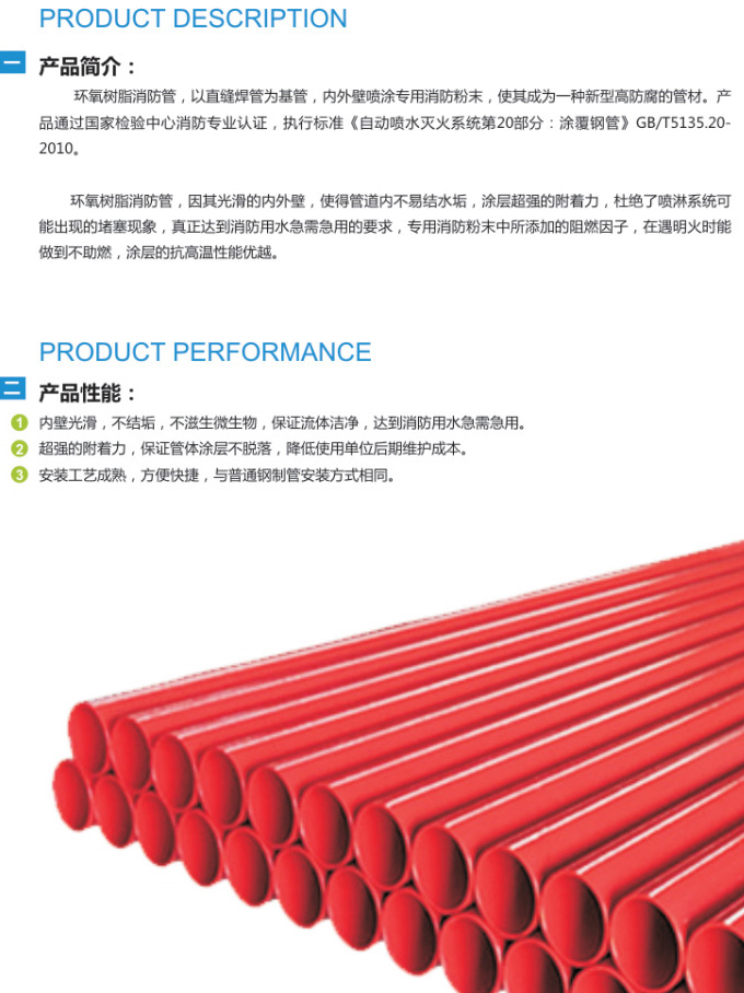 簡(jiǎn)介:環(huán)氧樹(shù)脂消防管,以直縫焊管為基管,內(nèi)外壁噴涂專(zhuān)用消防粉末,使其成為一種新型高防腐的管材。產(chǎn)